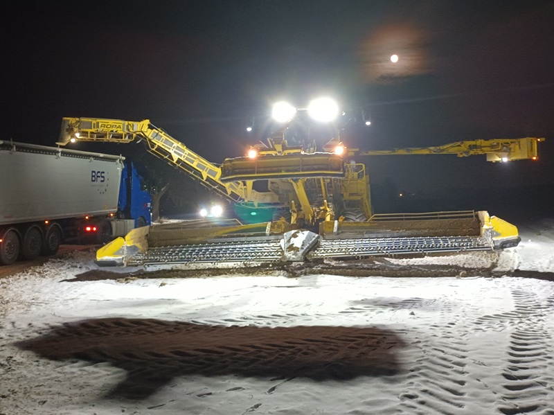 Nachdem zum Mittwoch, den 14. Januar 2026 die Zuckerrübenlieferung für die Fabrik in Könnern/Sachsen-Anhalt erfolgreich beendet werden konnte, sind heute Morgen die letzten Rüben für die Zuckerrübenfabrik in Zeitz im Burgenlandkreis (ebenfalls Sachsen/Anhalt) verladen worden. Somit endet nach reichlich 147 Kalendertagen bzw. nach 121 Werktagen die Verarbeitungs-Kampagne in Zeitz. In dieser Zeit hat die Transport- und Dienstleistungsgesellschaft mbH Lommatzsch mit Ihren Partnern zusammen rund 200.000 to Rüben zur Verarbeitung gereinigt, verladen und transportiert. Mit einer zweite Zuckerrübenlademaus sind in einer weiteren Kolonne rund 95.000 to Rüben zur Verarbeitung nach Könnern transportiert.